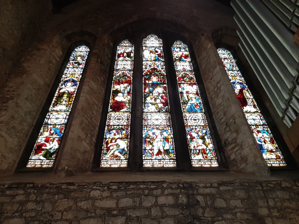 There was certainly no chance we’d miss it (although truth be told, we did mix it up with a smaller window nearby for a quick minute). The Caswell Window is a gorgeous, and enormous, stained-glass piece that covers the entirety of the north transept. Commissioned in memory of Samuel Caswell, the five large lancets depict numerous bible scenes including the Sermon on the Mount, St. Peter, St. Paul, and Mary at the Tomb. In addition to the imagery, there is an inscription that runs along the bottom of all five lancets: “Erected to the Glory of God and in loving memory of Samuel Caswell, Esq. J.P. of Blackwater by his widow and daughter. He died 9th of August 1874.”